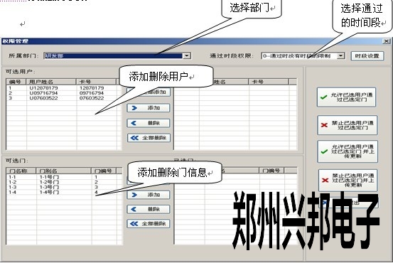 允許已選用戶通過已選定門:把選擇的用戶的開門權限加到數據庫中。可以再通過上傳功能進行上傳到控制器中。