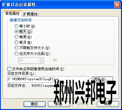 日志文件的路徑在 默認網站-屬性-啟動日志記錄中查看,如下圖所示: