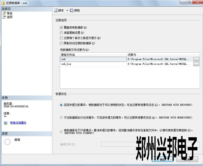 3、在“數據庫”點擊右鍵,選擇還原數據庫,在目標數據庫選擇剛才新建的數據庫,選擇源設備,選擇瀏覽,備份位置選擇添加。知道指定的bak文件,點擊確定。把導入的bak文件勾選上,在指定了要還原的*.bak文件以后,選項---->設置還原選項--->覆蓋現有數據庫(選上),其它默認。