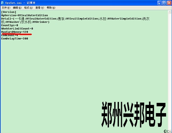 電腦桌面上找到485售飯機軟件圖標,然后光標停在此軟件圖標上右擊--屬性--查找根目錄,點開后打開軟件文件夾,也就是找到帶有軟件圖標的文件夾,然后找到SYSSET.INI此文件,雙擊打開,把MAXCARDMONEY=XX,更改成自己所需要的即可,如下圖:有一卡通,售飯,水控,洗衣機,飲水機等相關的中文數字,現在只需要把maxcardmoney=120,此時卡上總額最多只能存款為120,超過此金額就無法存款。