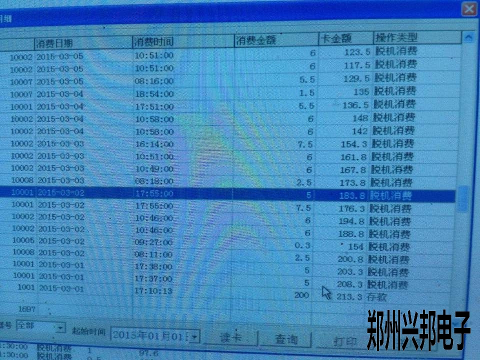 讓客戶(hù)在軟件里面查看一下個(gè)人明細(xì)表,選擇這張卡從開(kāi)卡到現(xiàn)在的時(shí)間段,從下往上看,因采集的時(shí)候只顯示到分,沒(méi)有顯示到秒,所以看數(shù)據(jù)的時(shí)候要在同一日期的往上看一下,有的是沒(méi)有按順序排列的。像圖上所示的,所選擇的這一列應(yīng)該是比下面的這一列先消費(fèi)的。還有一條是10005號(hào)的對(duì)不上,5號(hào)機(jī)應(yīng)該是時(shí)間錯(cuò)誤了,這條應(yīng)該是3月3 號(hào)的消費(fèi)數(shù)據(jù)。把5號(hào)機(jī)校一下時(shí),下載一下參數(shù)就可以了。這種問(wèn)題就解決了。
