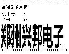 ② 計(jì)算模式:輸入扣費(fèi)金額,按[確認(rèn)]鍵后,將卡片放于刷卡區(qū),即可進(jìn)行扣費(fèi),若連接的有打印機(jī),可直接打印消費(fèi)明細(xì),打印出的信息如下圖所示: