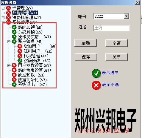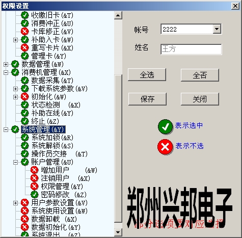 售飯水控系統(tǒng)軟件中關于操作人員權限分配的說明