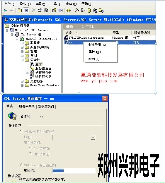 局域網一卡通食堂售飯機需要安裝數據庫2000,裝好數據庫時間長了,忘記了sa的登錄密碼,然后重新恢復備份的時候不知道密碼,下面告訴你怎么修改sa帳戶的密碼: