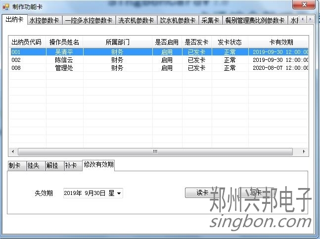 4,先讀卡,然后修改一下有點(diǎn)效期,再寫卡,這樣出納卡的有效期就修改成功了。